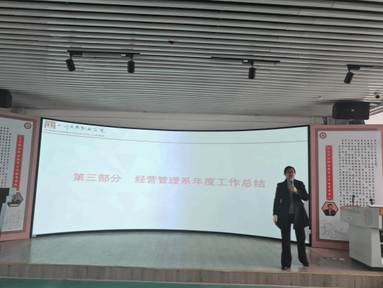 2025年1月7日下午2:00,经营管理系教师大会在实训楼107室如期举行。出席本次会议的有经营管理系主任王琦、经营管理系党总支书记杨洪和全系教师。会议由系党总支书记杨洪主持。