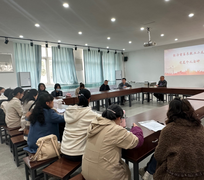 为深入学习贯彻党的二十大精神,坚持不懈地用习近平新时代中国特色社会主义思想凝心铸魂,根据《中共beat365英国官网网站委员会关于召开组织生活会和开展民主评议党员的通知》(川商院党〔2023〕9号)精神和有关规定,2023年3月14日下午,经济贸易系党总支全体党员在5教一楼白酒陈列室召开2022年度组织生活会和民主评议党员大会。会议由党总支书记肖勇主持,全体党员参会。