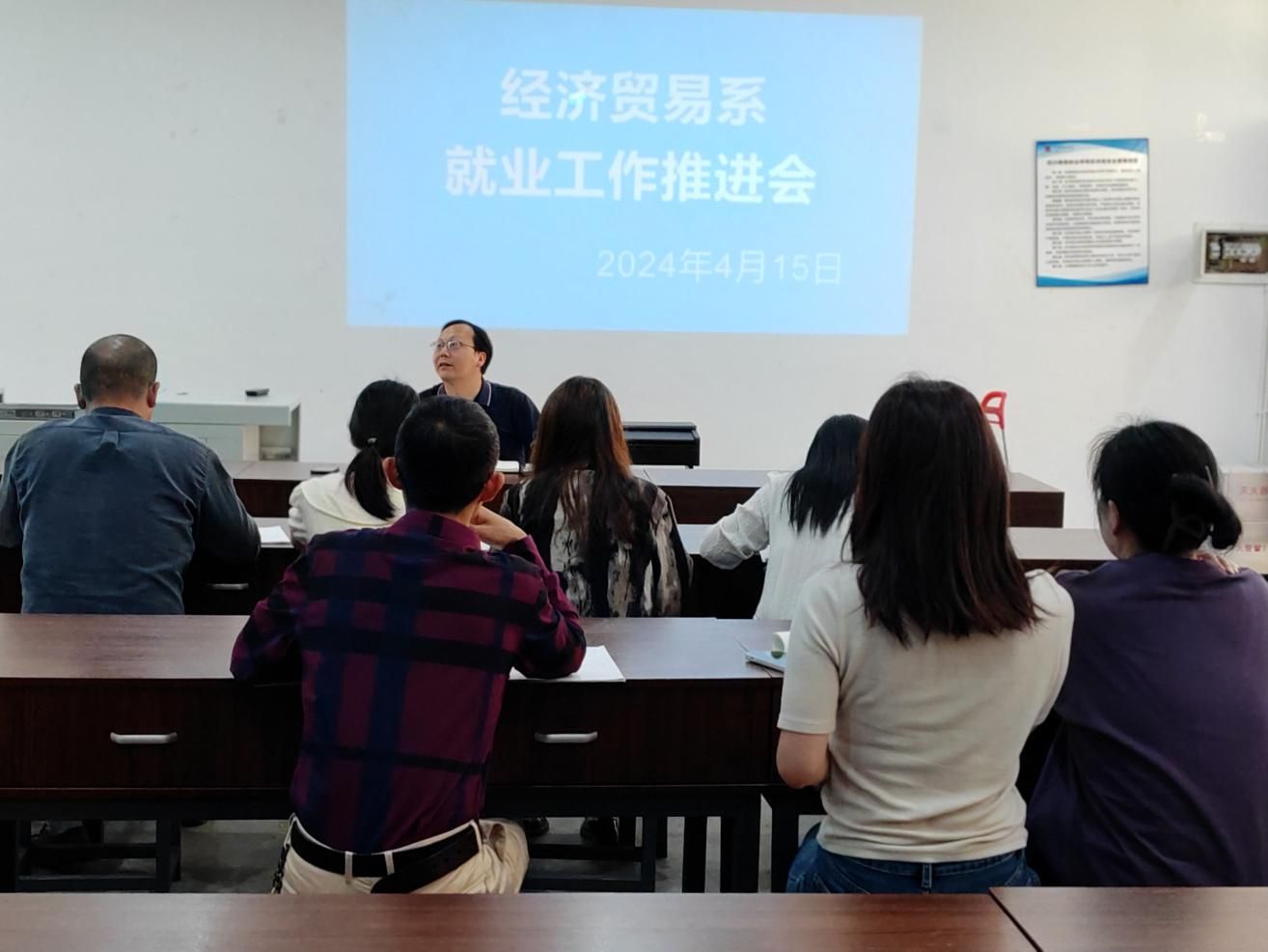 4月15日,经济贸易系召开了一场系部就业工作推进会,旨在进一步深化经济贸易系毕业生的就业工作,确保就业服务能够取得优质且显著的成效。会议由系党总支书记管齐峰主持,毕业班辅导员及就业干事参加