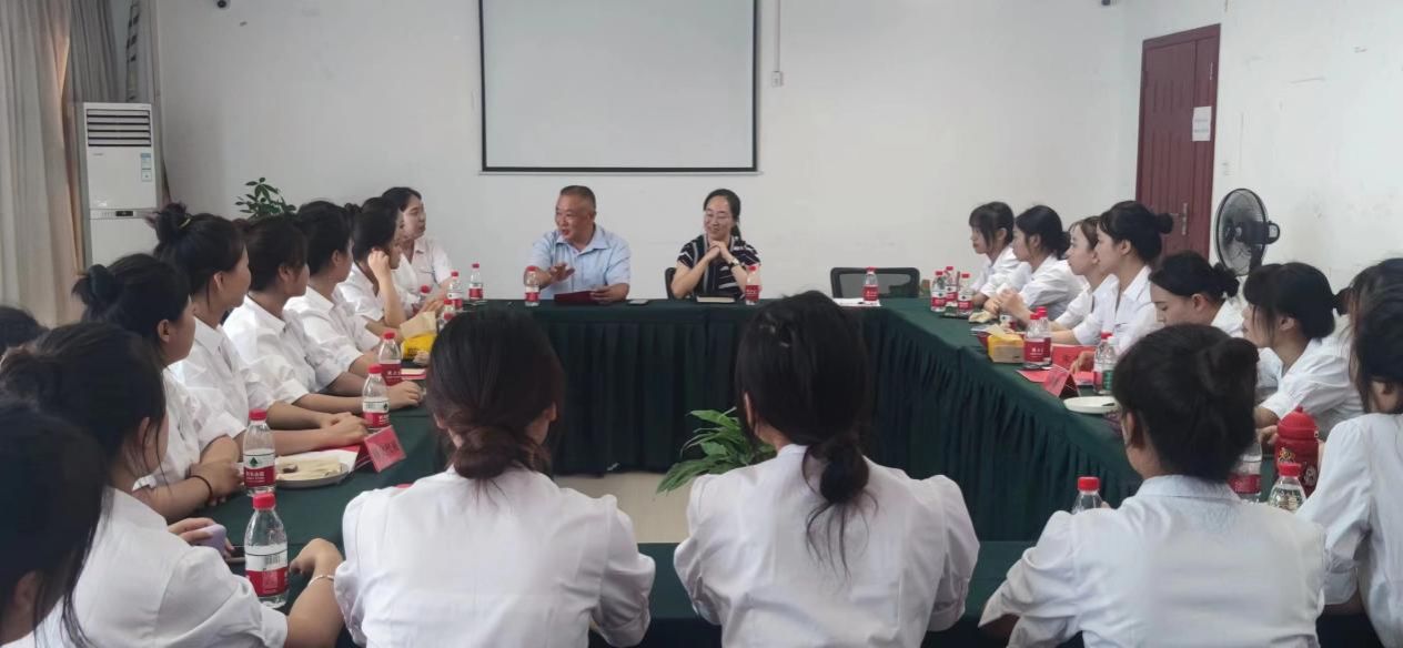 拜师会后,学院领导与实习学生进行了座谈交流,并鼓励同学们要积极主动适应社会,学处世之道,怀善良之心,勇于尝试、积极探索,不断提升自己的综合素质。