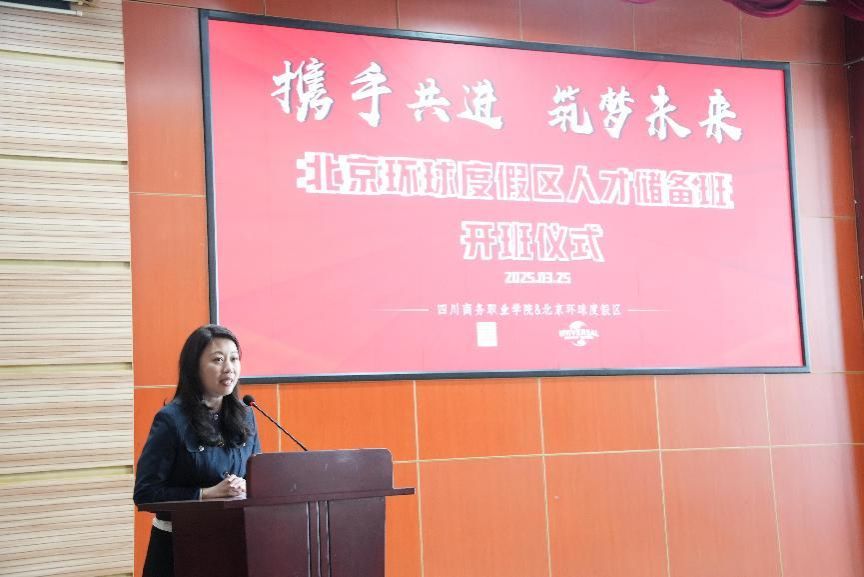 2025年3月25日上午,beat365英国官网网站与北京环球度假区校企合作人才储备班开班仪式在学院商务信息中心顺利举行。北京环球度假区人才招聘总监付颖,人才招聘经理任小超,校园招聘顾问董佳昕,学院副院长康璐领导,党委委员、副院长王军出席活动,教务处副处长刘磊主持开班仪式。