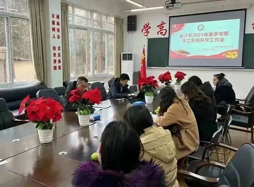 2月21日上午,会计系在文家场1103室召开新学期开学工作会,会议由刘能良主任主持,系部全体教职工参会。