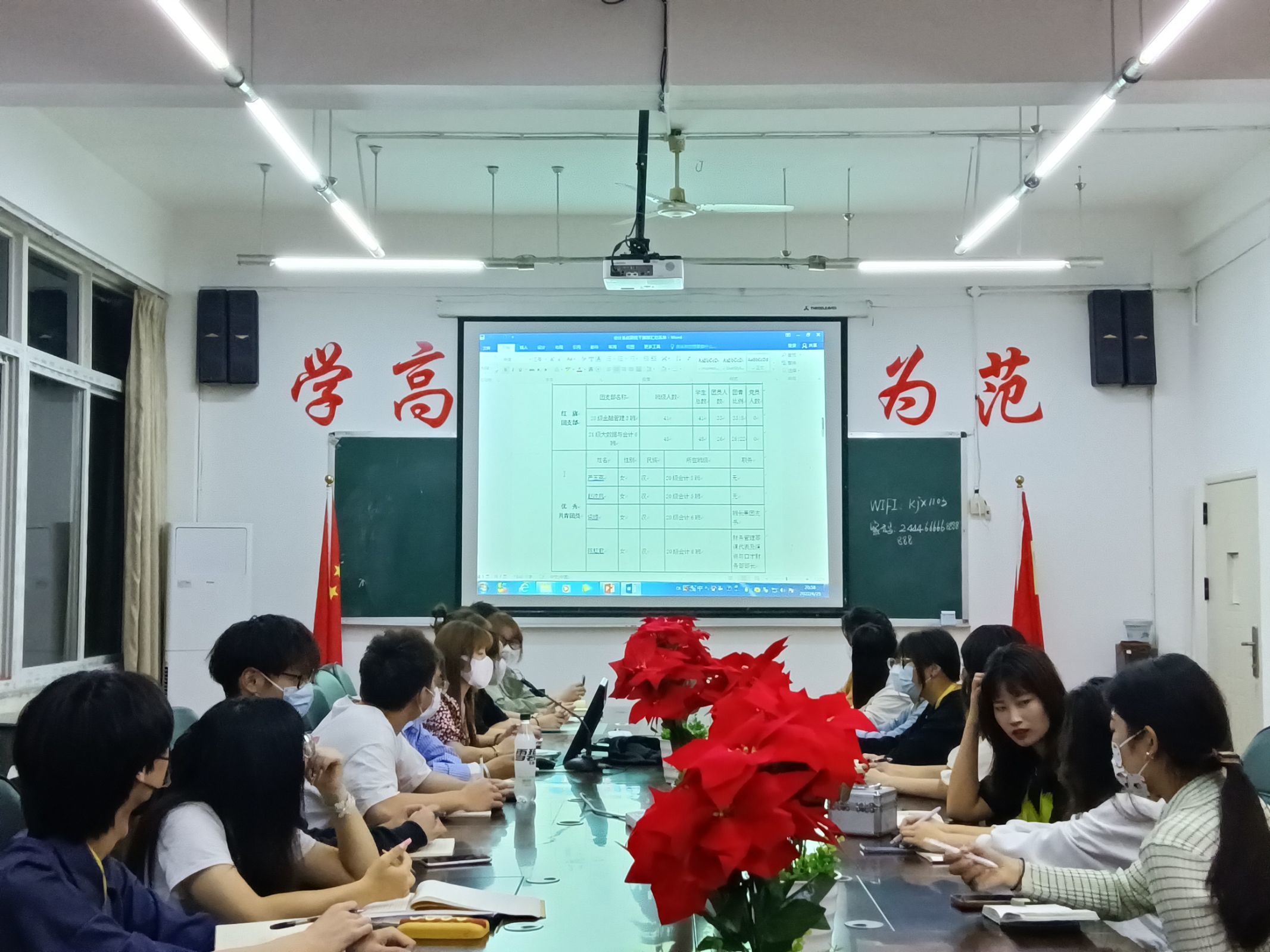 今年是纪念“五四”运动103周年,也是中国共青团成立100周年。在过去的一年中,会计系团总支和广大团员青年在学院党政、院团委和系党总支的领导下,面对疫情迎难而上,充分发挥着团组织、团员青年的先锋、模范作用。一年来,系团总支认真学习贯彻党的十九届六中全会精神、习近平总书记系列重要讲话和回信精神,加强团的自身建设,在商道校园文化建设、志愿服务、社会实践、创优创新创业等方面做了大量工作,根据《关于评选2021—2022学年度红旗团总支、红旗团支部、十佳团员标兵、优秀团干部、优秀共青团员的通知》要求,会计系团总支于2022年4月22日晚在西区教学楼1103会议室举行了2021—2022学年评优评干评选会。参加此次评选会议的有系团总支指导老师马如龙老师,会计系团总支学生会主席团、各部门负责学生干部、各团支部书记和团员代表。会议由我系学生会副书记杨姣主持。