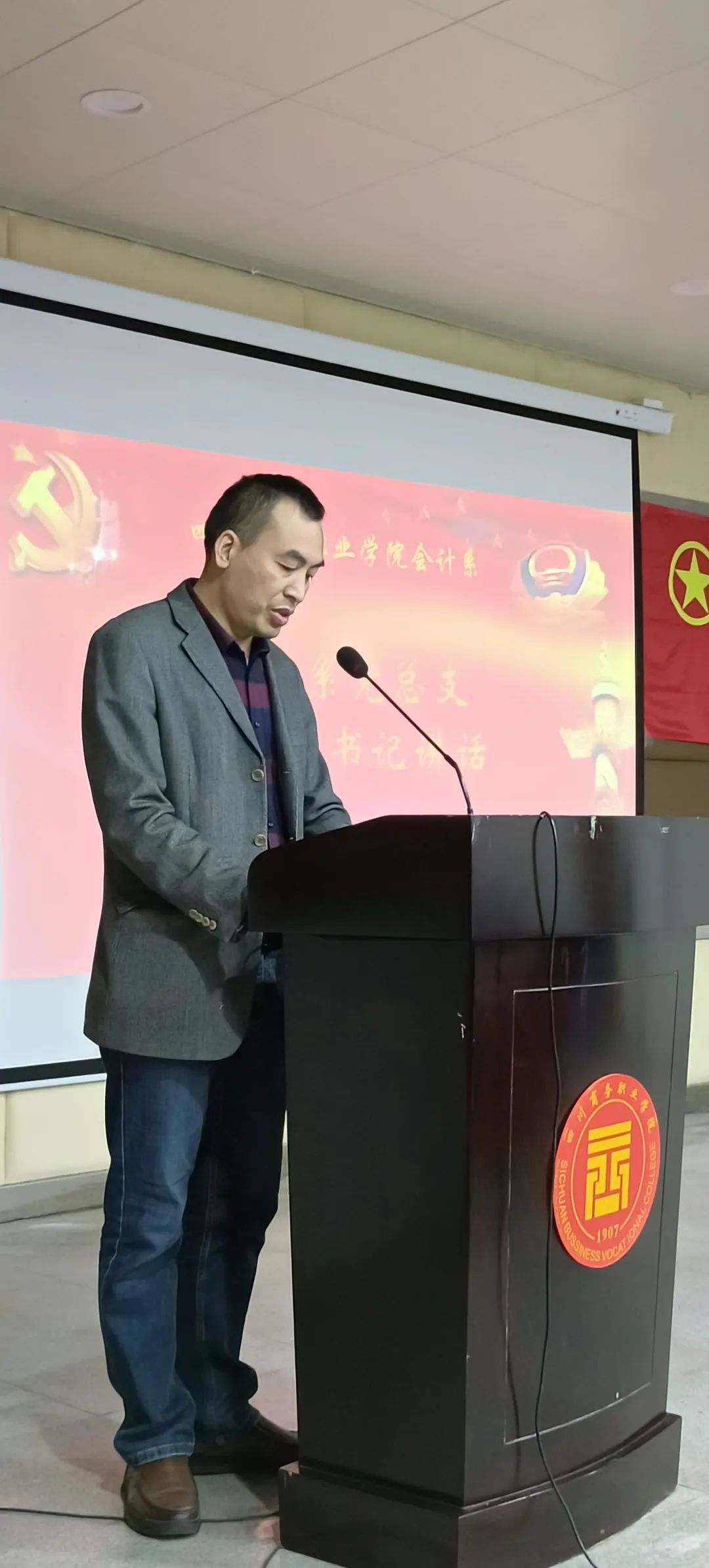 系党总支副书记周发强在讲话中说到:光阴似箭,白驹过隙。在这过去的一学期中,我系团总支在党总支的正确领导下干部勤勤恳恳、开拓创新。回首过去,我们为取得优异的成绩而感到自豪;展望未来,我们对即将踏上的道路充满期盼,责任在肩,势必要拼搏奋进,锐意进取,前方路很曲折艰难,必须坚定远大理想、励志前行,孜孜不倦、求索新知;希望所有学生干部在干好自己本职工作的同时,不断投身实践,锐意创新,不断增强工作的感召力、吸引力和影响力,不断团结和凝聚更多的优秀青年,创造新的青春业绩,为会计系的发展做出新的更大的贡献!