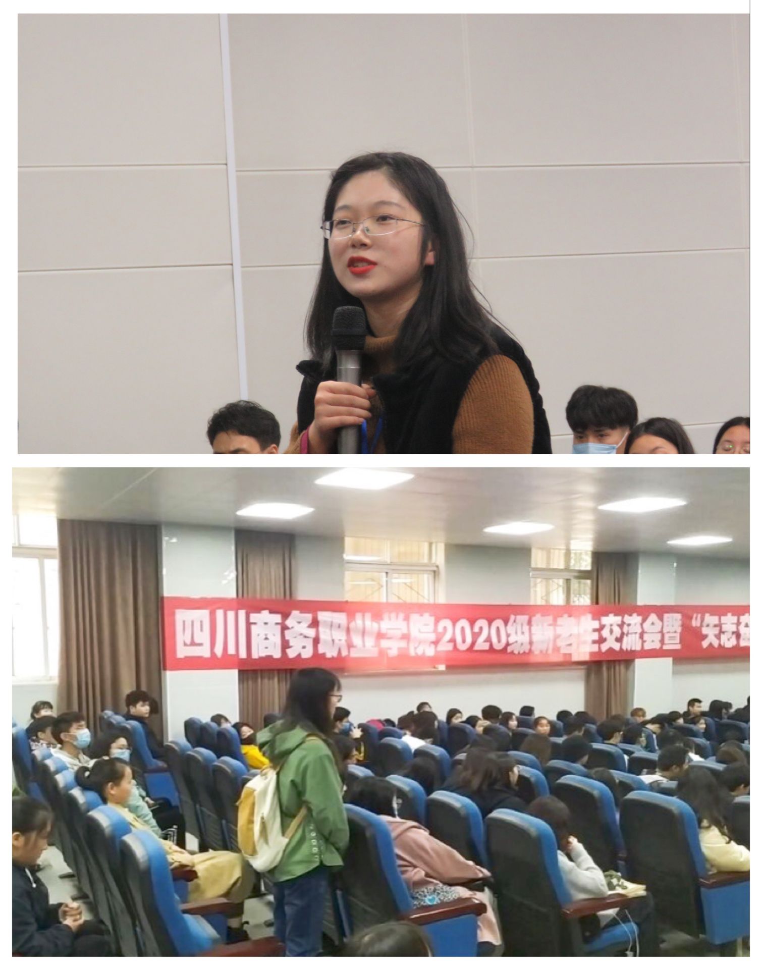 学生组织代表,院团委副书记青玉龙从学习和生活两方面展开交流。学习上,他告诫同学们自律、自觉,做好角色转换;生活上,他倡议充实自我,积极参与学院活动,加强能力培养。来自会计系的赵臻学长分享了他的暑期社会实践经历——疫情下自贡经济的发展。他采取了线上线下的调研方式,充分的为我们讲解了疫情下人民生活的改变,使我们了解到疫情期间当地经济发展状况。学长学姐们的精彩分享,使在座的新生感触良多,受益匪浅。