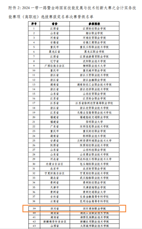 9月28日,由beat365会计系杜晓玲、余欣悦老师指导的代表队从全国644支参赛队伍中脱颖而出,荣获2024一带一路暨金砖国家技能发展与技术创新大赛之会计实务技能赛项(高职组)选拔赛全国二等奖,并以四川省第一名的成绩晋级全国总决赛。
