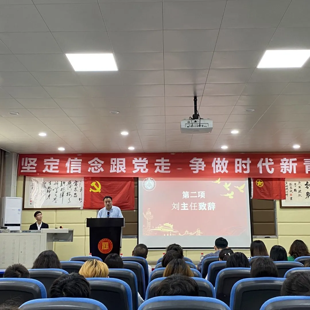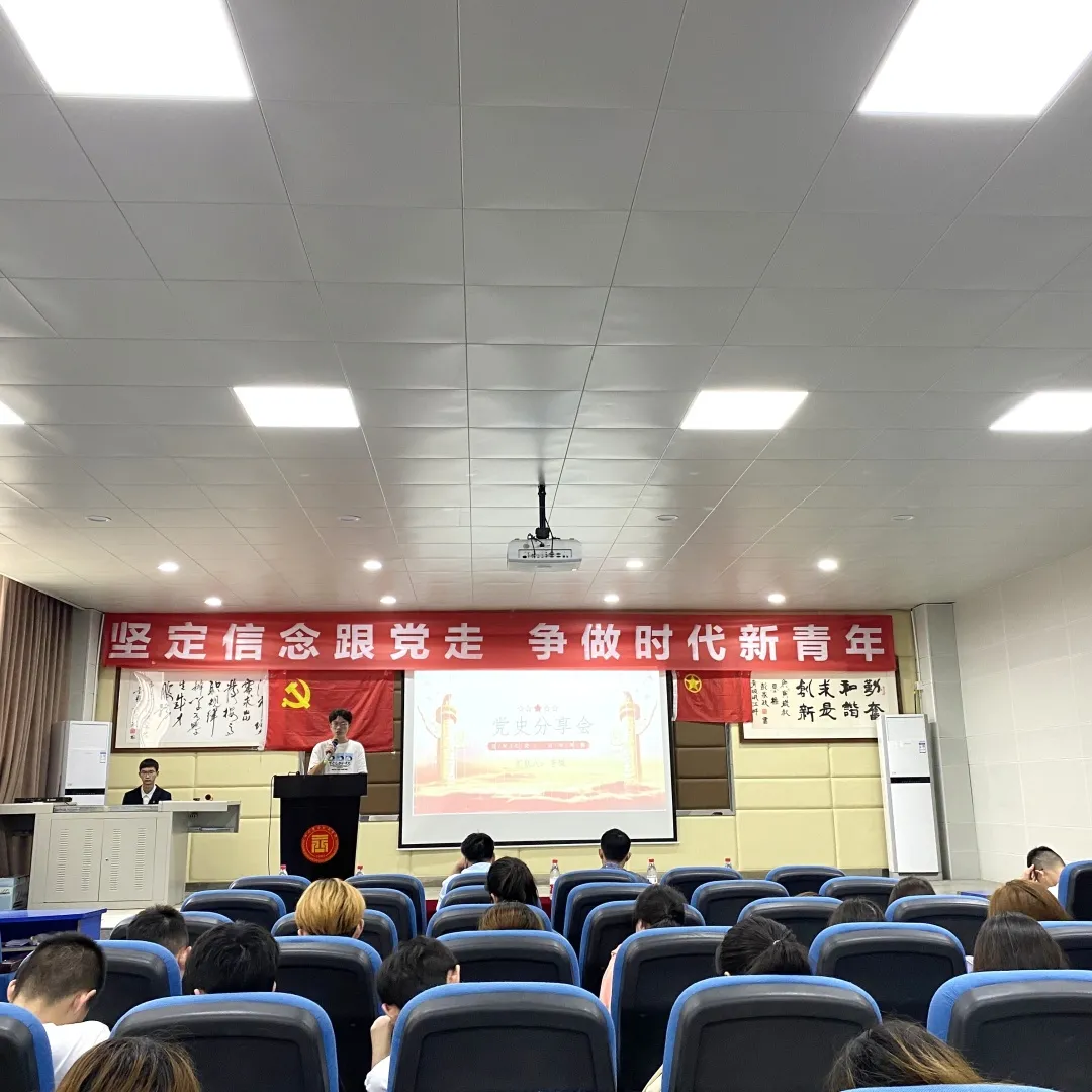 活动开始,主持人带领大家一起唱响团歌。在同学们的歌声中,唱出了对党的热爱,对祖国美好未来的期望。刘能良主任对本次活动进行致辞:学习党的历史,了解党的过去才能看清前进的方向。如何学好党史、用好党史?应该做到两个“牢记”。牢记党的理想信念,始终不忘党的最终目标;牢记党的历史经验。通过刘主任的致辞,同学们更加深刻的感受到学习党史、分享党史能够锤炼新时代青年勇气胆识、展现新时代青年无私风采,谱写新时代新篇章.