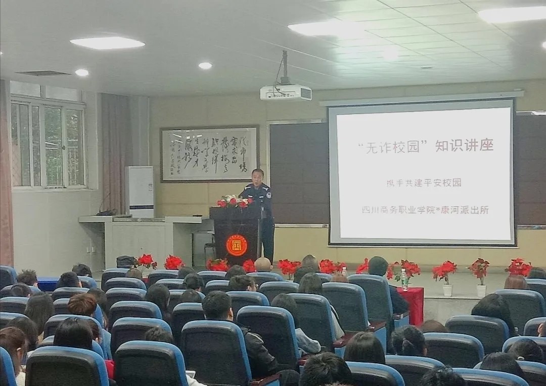 长期以来,诈骗集团侵害的不单单只是某个个体,而是整个社会群体。不仅对群众的钱财造成伤害,还会破坏整个社会的稳定秩序和安定环境。对诈骗集团必须坚决“亮剑”、果断出击。10月29日下午5点30分,康河派出所的周涛警官在beat365英国官网网站学术报告厅为beat365英国官网网站会计系的同学们宣传防诈骗知识。