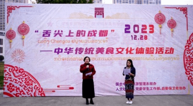 12月28日,由国合中心、旅游管理系联办,人文社科部、党委学生工作部和后勤保卫处协办的“舌尖上的成都——中华传统美食文化体验活动”取得圆满成功。学院党委委员、副院长许丹雅和副院长康璐及49名老挝留学生参加活动。