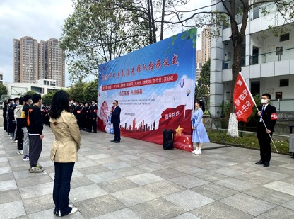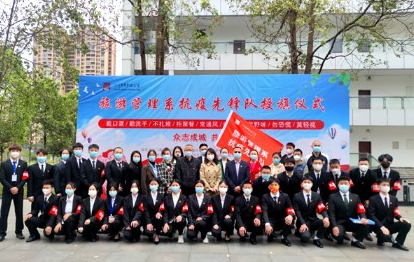 3月22日中午,旅游管理系举行了学生抗疫先锋队成立暨授旗仪式,先锋队由28名学生入党积极分子、预备党员及学生党员组成,20级休闲体育班学生党员何忠明同学任先锋队队长。