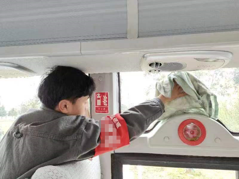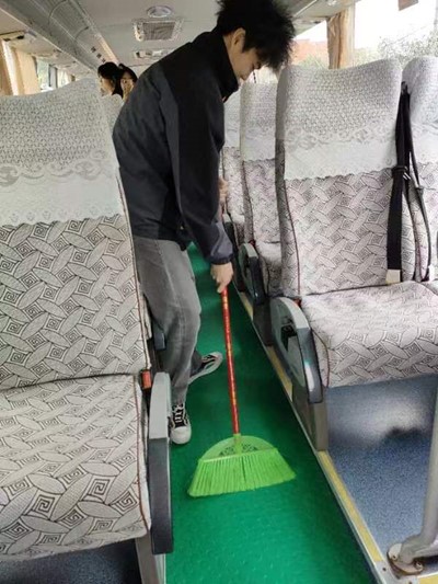 在队长陈郅昂的带领下,同学们带上各自的清洁工具投入到校车清洗活动中。从车厢内的每一排座椅、每一扇车窗玻璃、每一根扶手,到车外的车身、轮胎、挡风玻璃,同学们都悉心清理,用心擦拭。尽管当天天气仍有些清冷,但劳动后的大家心里确实是暖洋洋的,大家都期盼着老师们坐上干净、清新的校车后的愉悦心情。