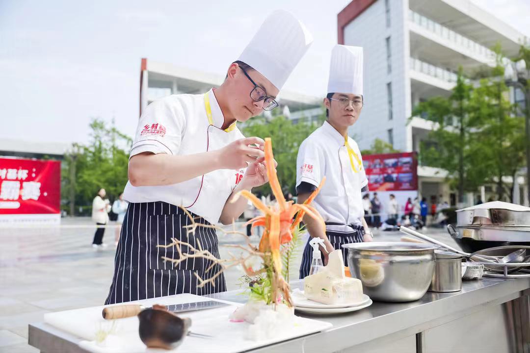 经过近2小时的精心烹制和激烈角逐,教师组穆然荣获金奖;游丽莎、张茂玻获得银奖;杨红芬、李亚君、唐艳青获得铜奖。学生组由2021级和2022级烹饪专业学生中通过初赛选拔出来的16名选手组成,评委根据菜肴的口味、质地、色泽、造型、营养卫生、时间控制等6个方面综合打分。最终,张鹏、沙马土哈、陈鑫同学获得指定菜品宫保鸡丁项目金奖,陈科宇同学获得自选菜项目最佳滋味奖、最佳造型奖、最佳创意奖和金奖,张鹏等2人获得银奖;赵海等3人获得铜奖,其余选手获得优秀奖。