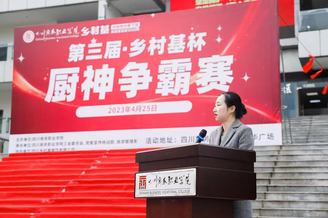 4月25日上午9:00,由学院工会委员会、党委宣传统战部和旅游管理系承办,四川乡村基有限公司协办的第三届“乡村基杯”厨神争霸赛在学院振华广场如期举行,副院长康璐、乡村基集团品牌四川公司区域总经理赵晓燕、人力资源总监陈容、区域总厨曾照祥、田海、训练部经理伍艳、李丹、唐彬以及学院相关职能部门负责人出席了本次大赛。