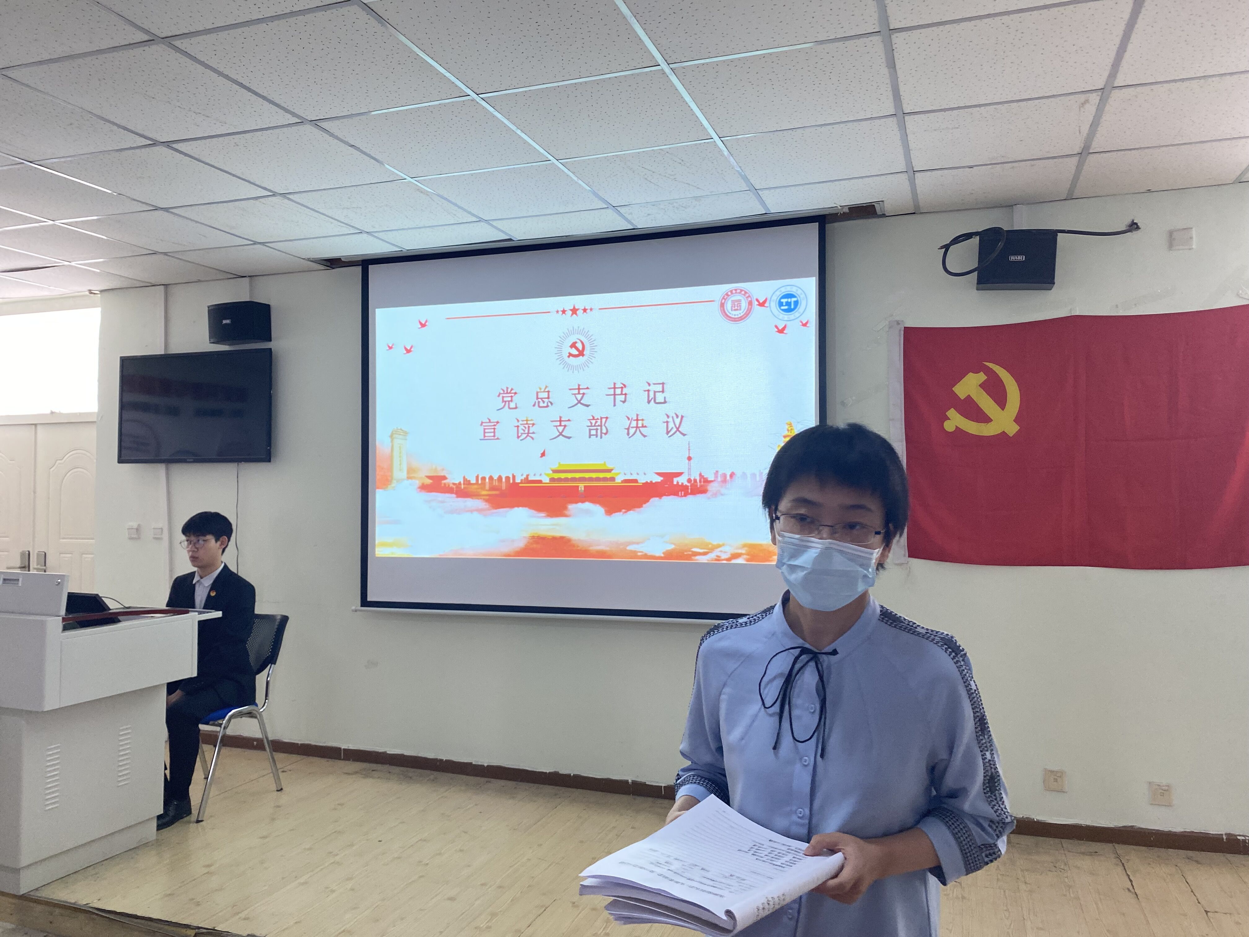 最后由系党总支书记冯端宣读会议决议,本次会议到会有表决权的党员人数8人,经支部大会投票表决,全票通过,一致同意报经学院党委批复同意后吸收王玲梅、周洁、邹星艺、宋光皓4名同志为中国共产党预备党员;全票通过,一致同意通过鲜家鸿、王振宇、胡浩瀚、陈廷峰4名同志按期转为正式党员。