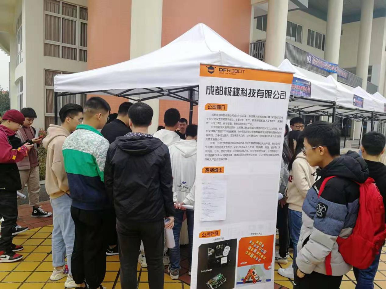 早上10点,逐渐转冷的天气也挡不住同学们热情的步伐,同学们早早地到达会场,积极地咨询岗位信息、投递简历;01号成都企业极趣科技有限公司前就有不少同学前来咨询、投递简历。