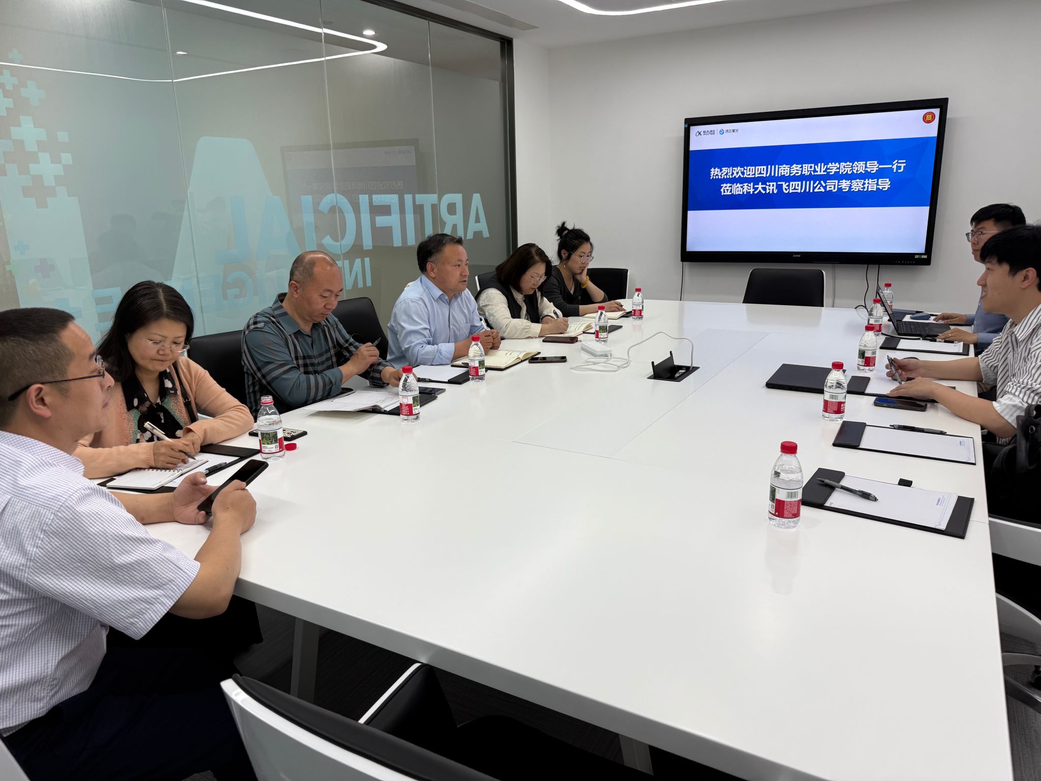 4月14日,信息技术系主任刘能良率队一行到科大讯飞四川分公司进行访企拓岗。科大讯飞西南区技术总监陈世钰、校企业务总监张潇等陪同接待。双方参观了成华区科大讯飞人工智能展厅及科大讯飞在AI+政务、医疗、教育等应用场景展馆后,就人工智能赋能高校高质量发展进行了座谈交流。